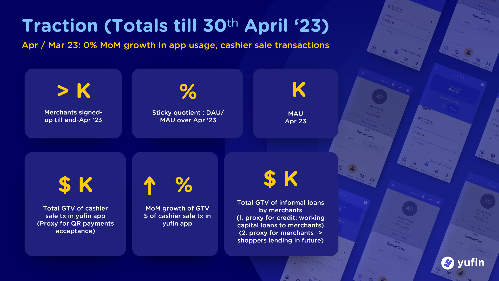 These yufin decks are heavily used by our FSAs (Field Sales Ambassadors) for app sign up events as well as potential partnerships to help merchants and business partners get to know our product and onboard them on the new updates of all the services we’re offering within the app.