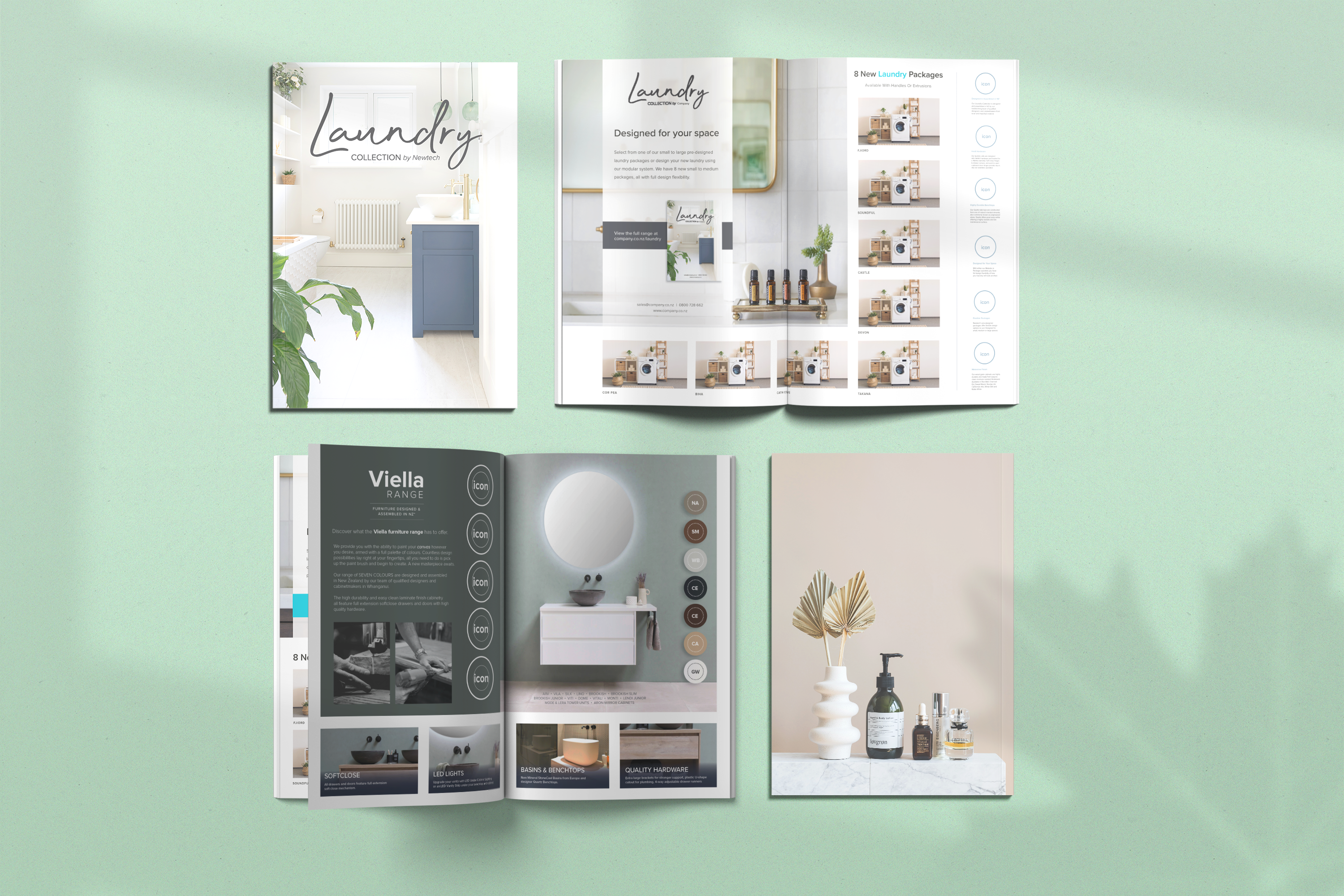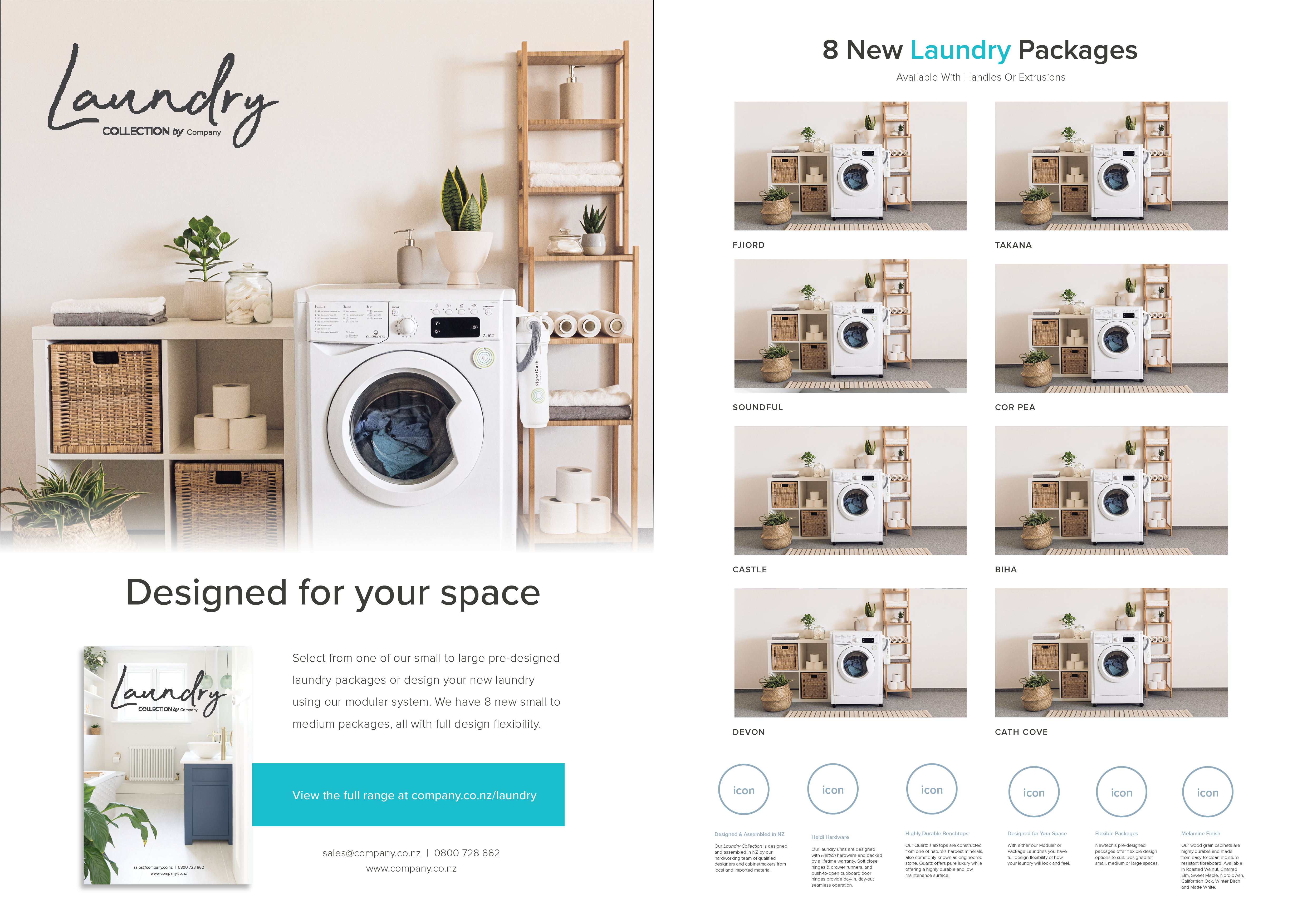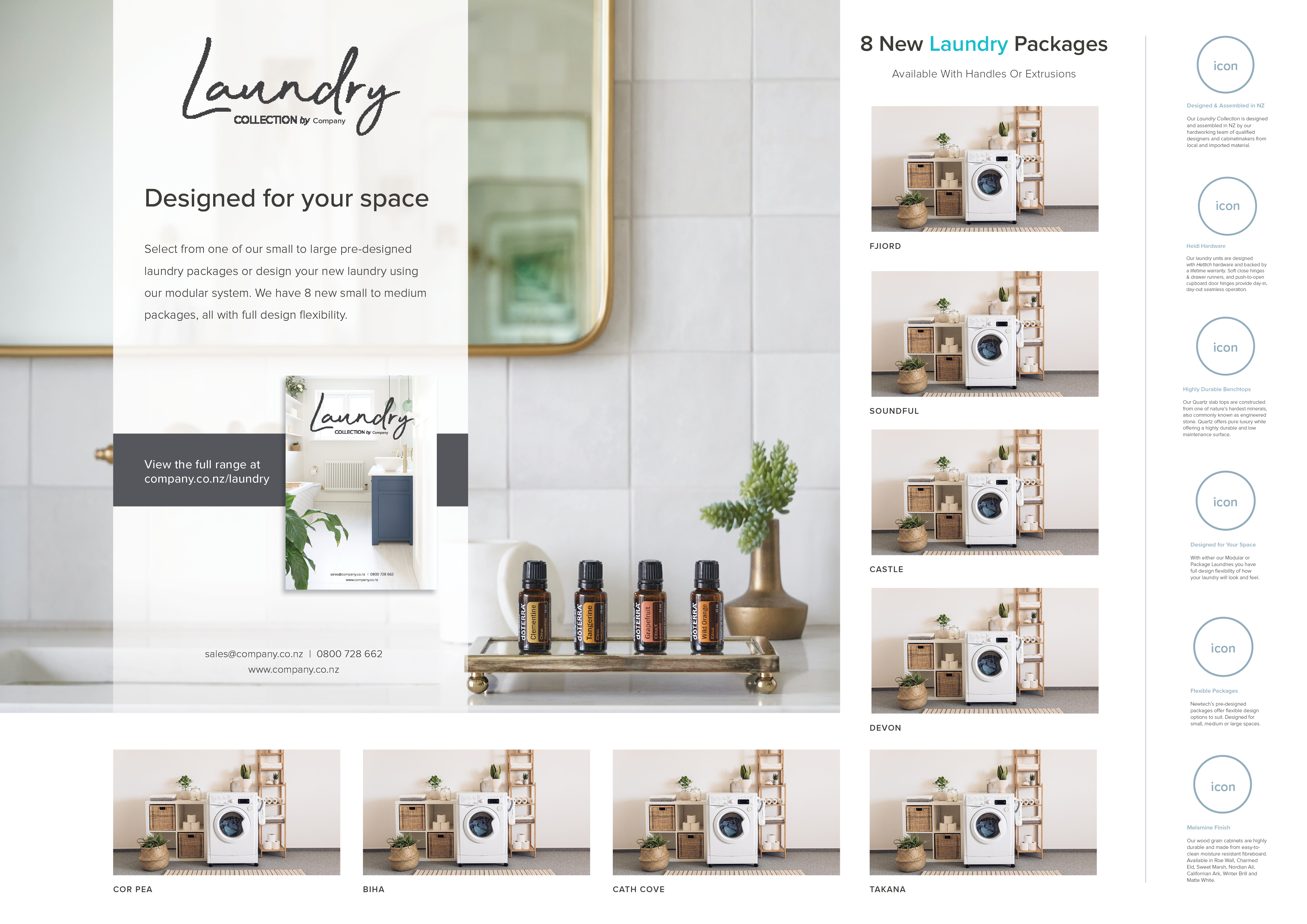 These are layout designs I conceptualized for Newtech, also a New Zealand client, which they use for their online/printed catalogues, and label designs that go with the company's boxes for their orders. We always made sure to provide our clients different designs to choose from.